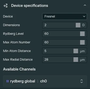 Before creating a quantum program, we need to decide on which kind of device it will run. Device limitations and capabilities have consequences on the possible register configurations and how pulses will affect the qubit states.